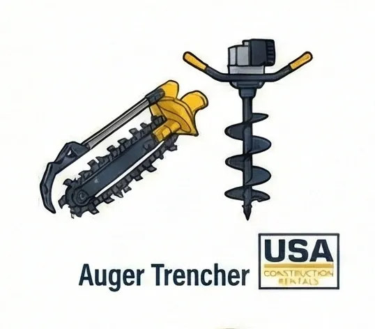 Auger Trenchers These use a wide, rotating screw. They grind the earth and push it to the sides. They are excellent for creating wider ditches needed for storm drains or large pipes.