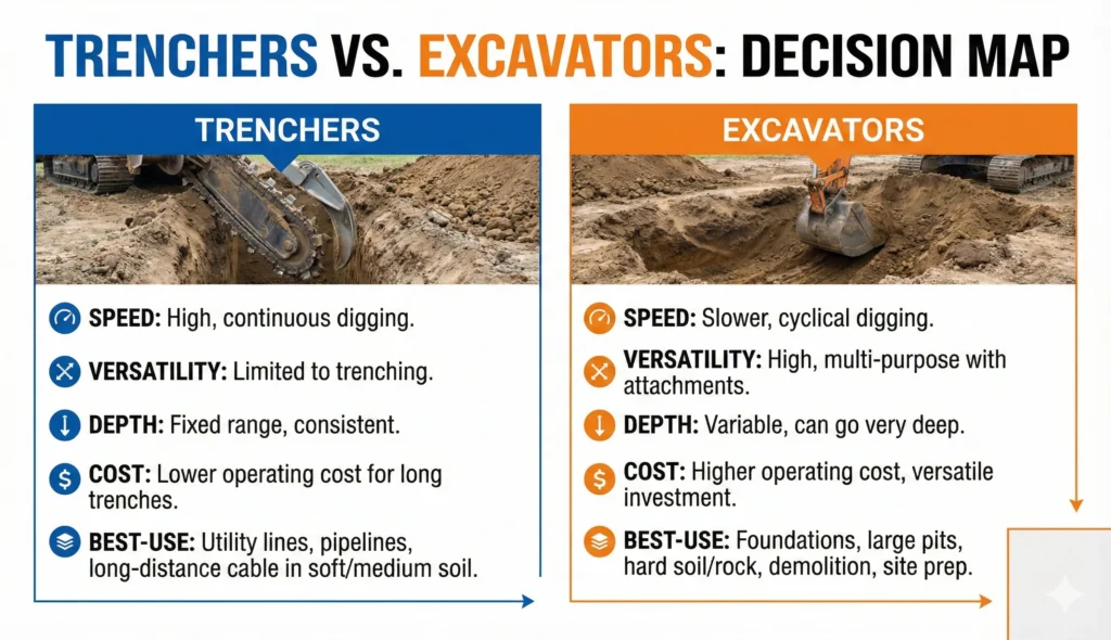 | Factor | Trencher | Excavator |